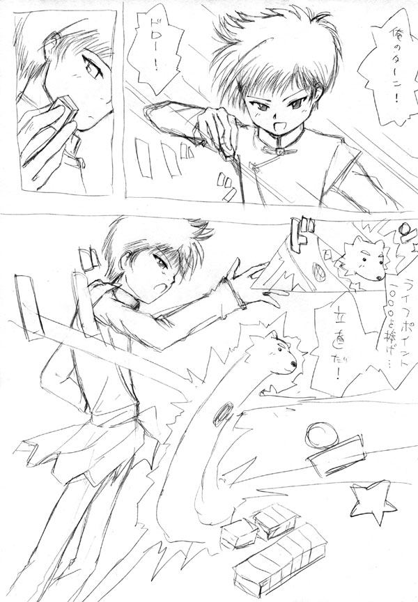 完全オリジナル麻雀漫画のようで、なんかパクり気味。そんなん描いている割に、麻雀の腕ははんちく。(´;ω;`)