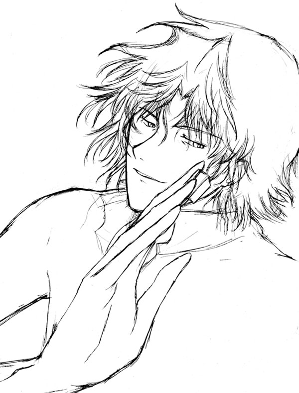 最初は、顔の右半分が隠れるような位置に手を描くつもりだったんですけど、そうするといよいよ誰だかわからなくなりそうだったので(^^;